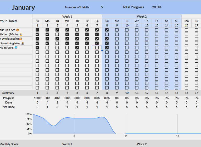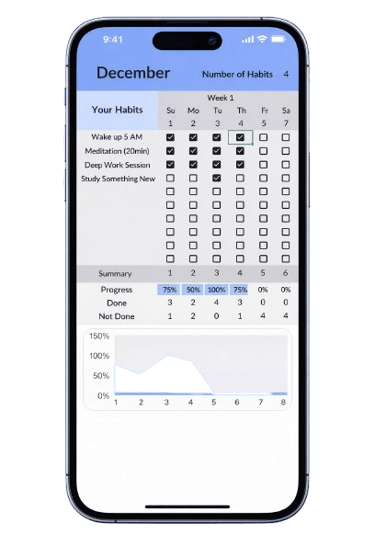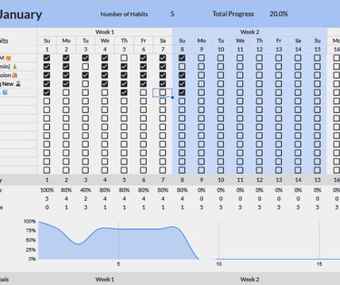 An elegant Spreadsheet that adapts to your goals. Clear, automatic tracking to build consistent habits without the clutter